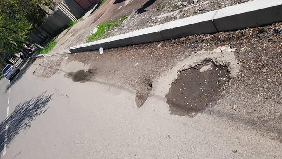 В Бишкеке еще на одной отремонтированной улице провалился асфальт. Об этом в социальной сети Facebook написал пользователь Манас Кадыров.