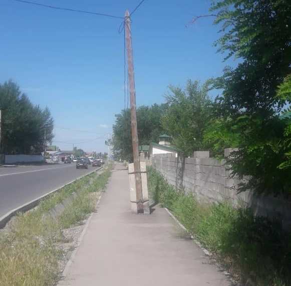 На улице Ахунбаева в районе пересечения с Муромской электрический столб расположен посреди тротуара. Об этом сообщил читатель.