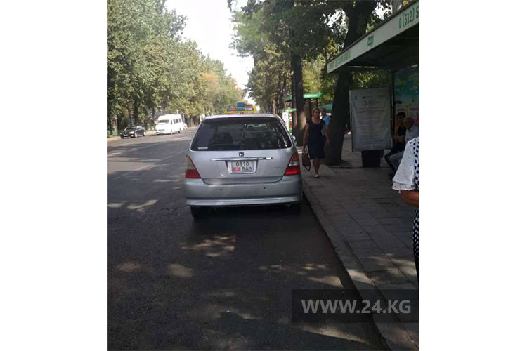 Еще один таксист стоял на остановке для общественного транспорта. «Троллейбус не мог нормально высадить пассажиров из-за вот такого чудака», — написал бишкекчанин.