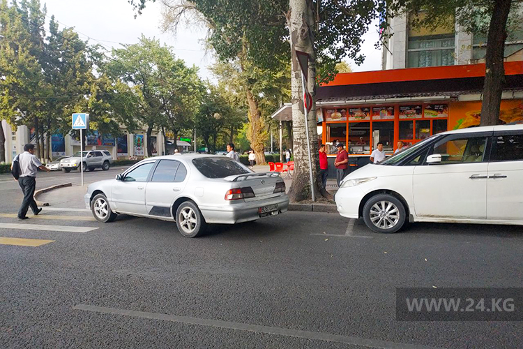 «Этот водитель не пропускает пешехода, он просто так оставил машину и ушел. В салоне никого нет», — написал читатель. Фото сделано на перекрестке проспекта Чуй и бульвара Эркиндик.