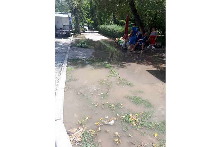 Читатель добавил, что тротуаров и арыков на отрезке между улицами Уметалиева и Турусбекова нет, вся вода на дороге.