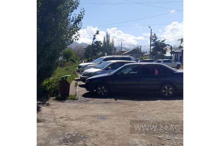 Жители Каракола жалуются на автовладельцев, загородивших проход. «Где ходить пешеходам? Иногда идешь с детьми и приходиться обходить машины по дороге», — сетует читатель.