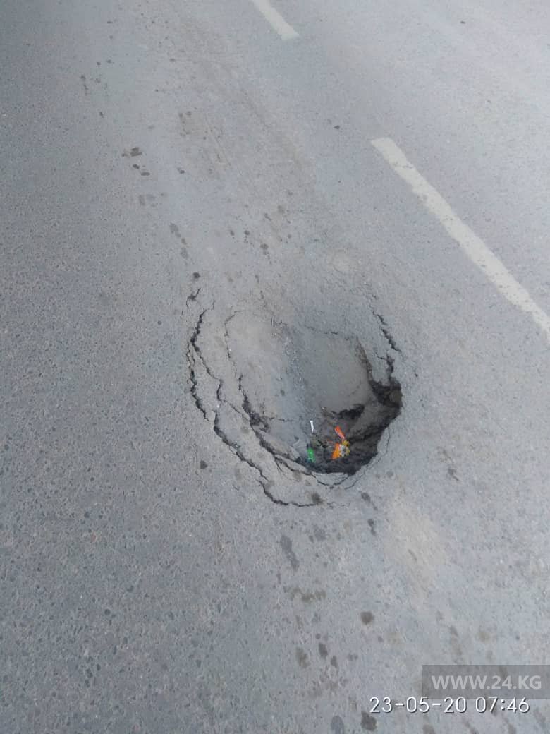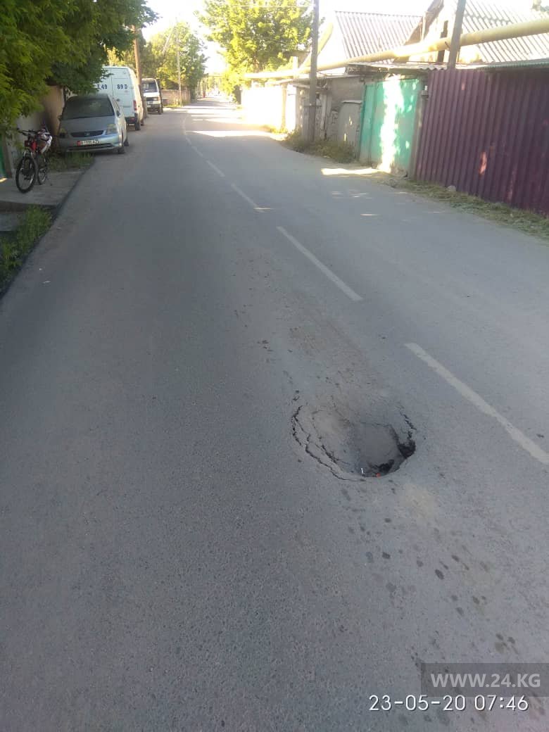 На пересечении улиц Садыгалиева и Волковой образовалась яма на новом асфальте. Об этом 24-kg.com сообщил читатель.