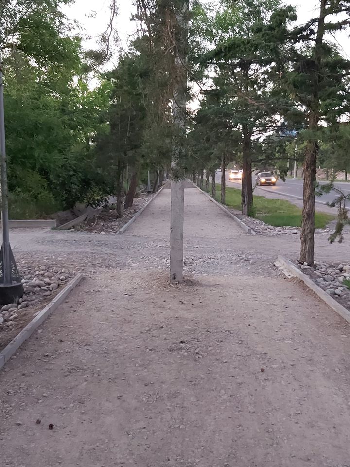 Столб посреди новой велодорожки оставили строители на улице Байтика Баатыра. Об этом в группе «Черный список — нам не понравилось» в Facebook сообщил Марат Темирбек уулу.