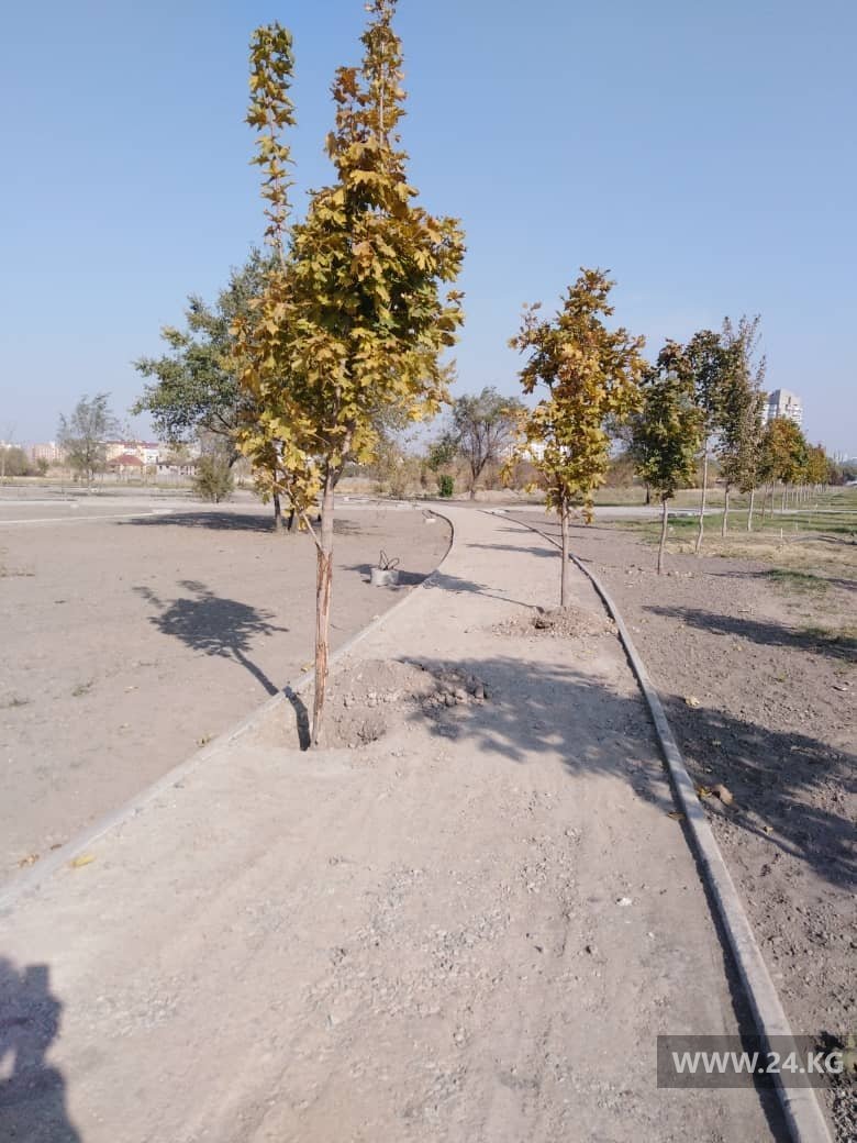 В Бишкеке в парке на улице Токомбаева деревья оказались посреди пешеходных дорожек. Об этом 24-kg.com сообщили читатели.