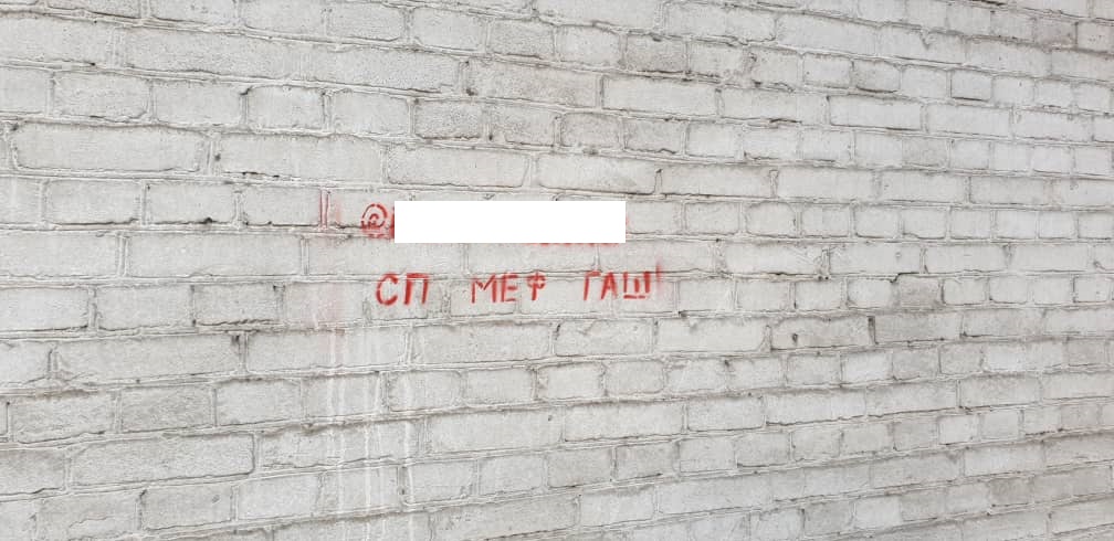 Объявление с адресом Telegram-канала нанесли краской в нескольких местах.