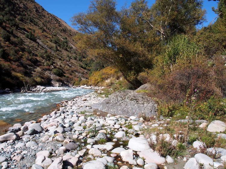 Долго в городе не задерживаемся и выбираемся на природу, где осень столь же прекрасна. В Аламединском ущелье в октябре побывал еще один наш постоянный автор Евгений.