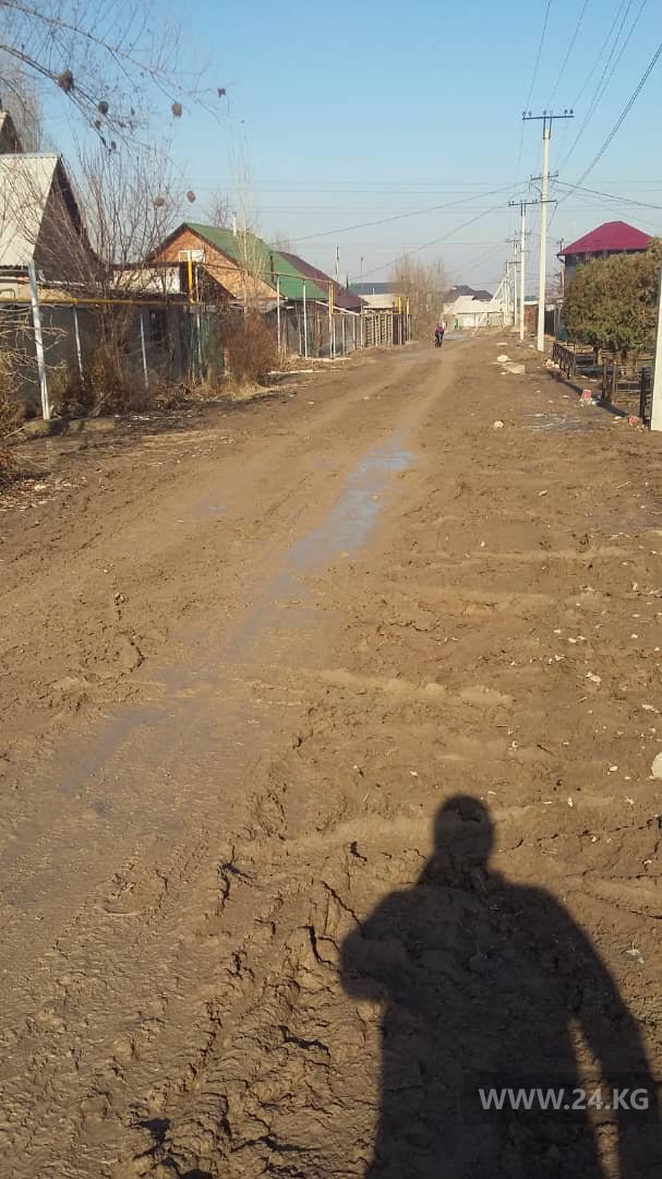 «Жилой массив «Ала-Тоо-1», улица Алай-Кум. Так как наша улица находится на границе села Новопавловка и Ленинского района Бишкека, то ни с одной стороны, ни с другой не обращают внимания на состояние улицы», — отметил читатель.