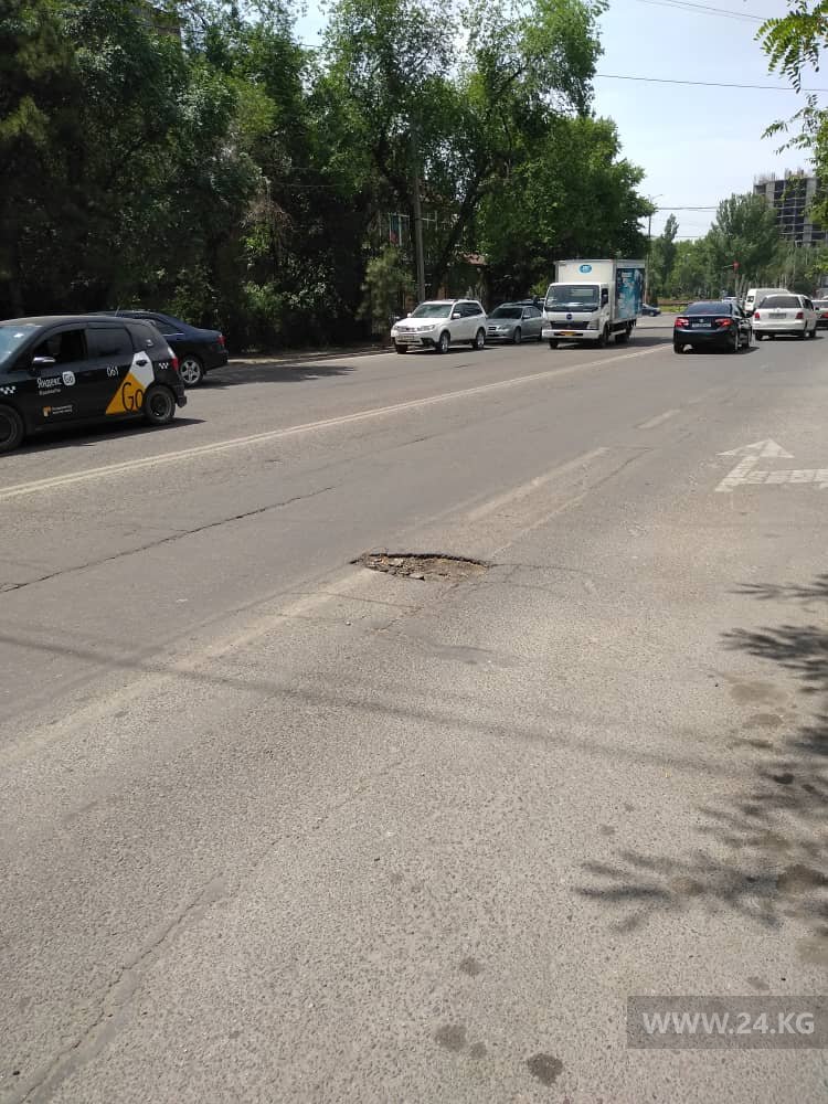 «Яма на перекрестке улиц Фрунзе и Осмонкула уже давно. Не хотят ли в мэрии ее залатать?» — спрашивает читатель.