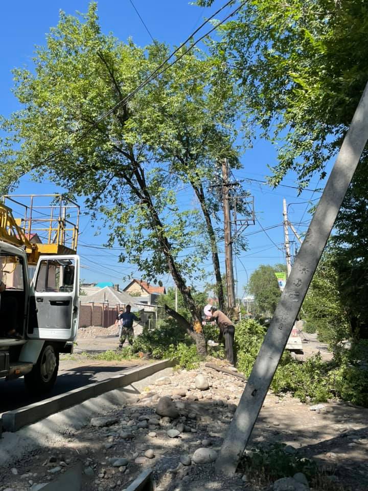 В Бишкеке на пересечении улиц Матросова и Карасаева спилили здоровое дерево и кусты. Об этом сообщила горожанка Камилла Валиева.