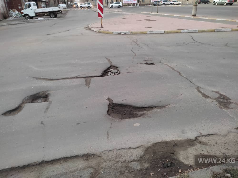 На улице Ибраимова при въезде с улицы Толстого на дороге образовались ямы. Об этом 24-kg.com сообщил читатель.