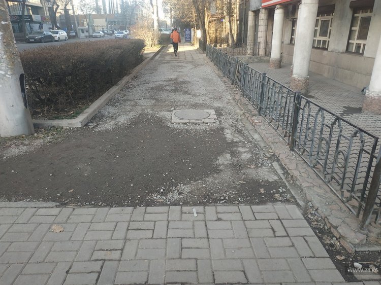 Тротуар на улице Киевской просит отремонтировать бишкекчанин. Об этом он сообщил 24-kg.com.