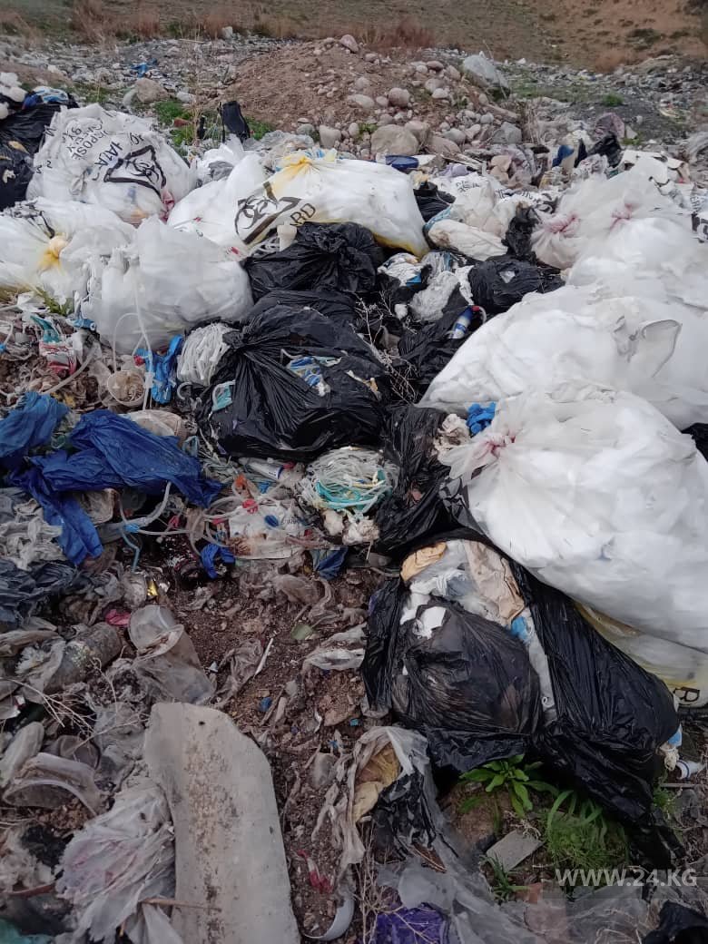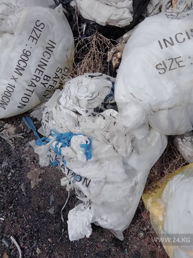 На свалку Чолпон-Аты выбросили большое количество медицинских отходов. Об этом 24-kg.com сообщил читатель.