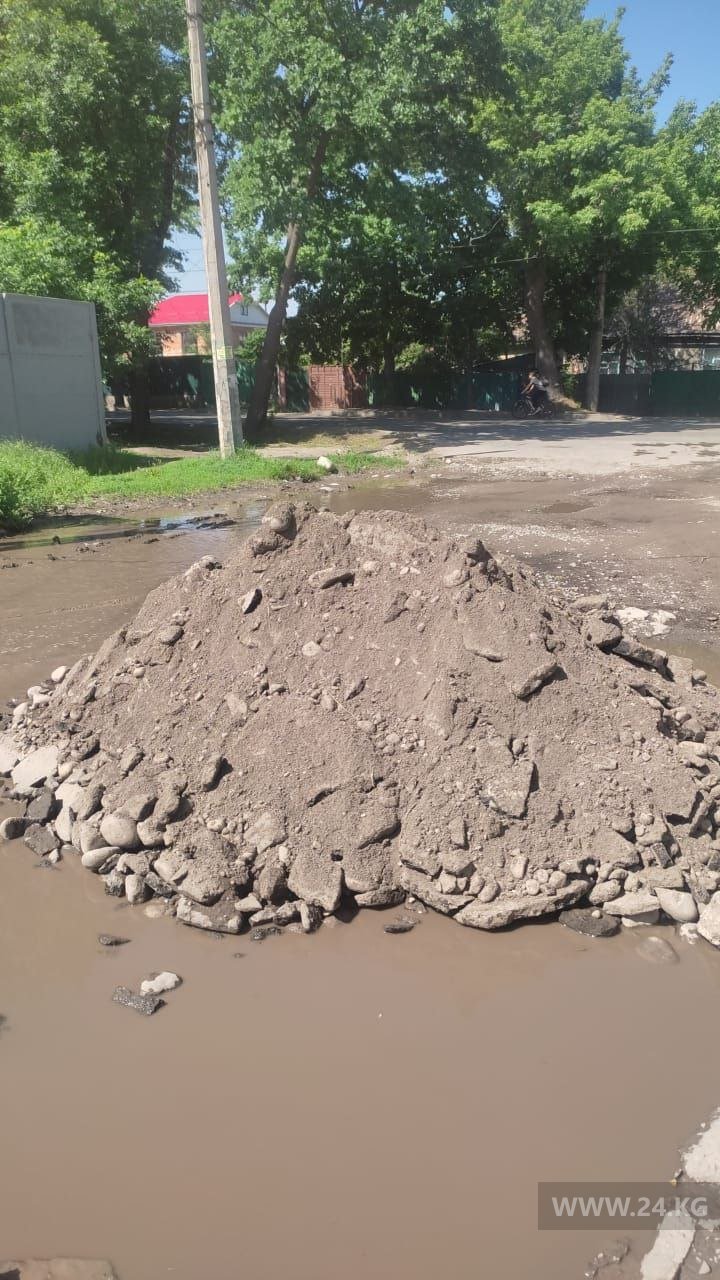 Мэрия Бишкека своеобразно отреагировала на жалобу горожанина о разбитой дороге в Аральском переулке. Рабочие засыпали огромные лужи и ямы землей. Об этом 24-kg.com сообщил читатель.