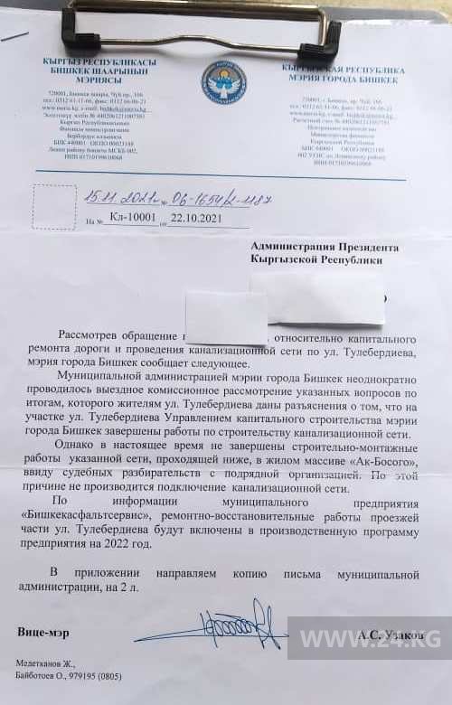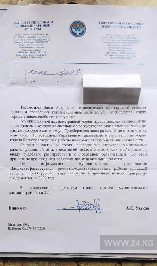 Отметим, о своей проблеме жители улицы Тулебердиева писали 24-kg.com еще в 2021 году, но до сих пор их вопрос не решен.