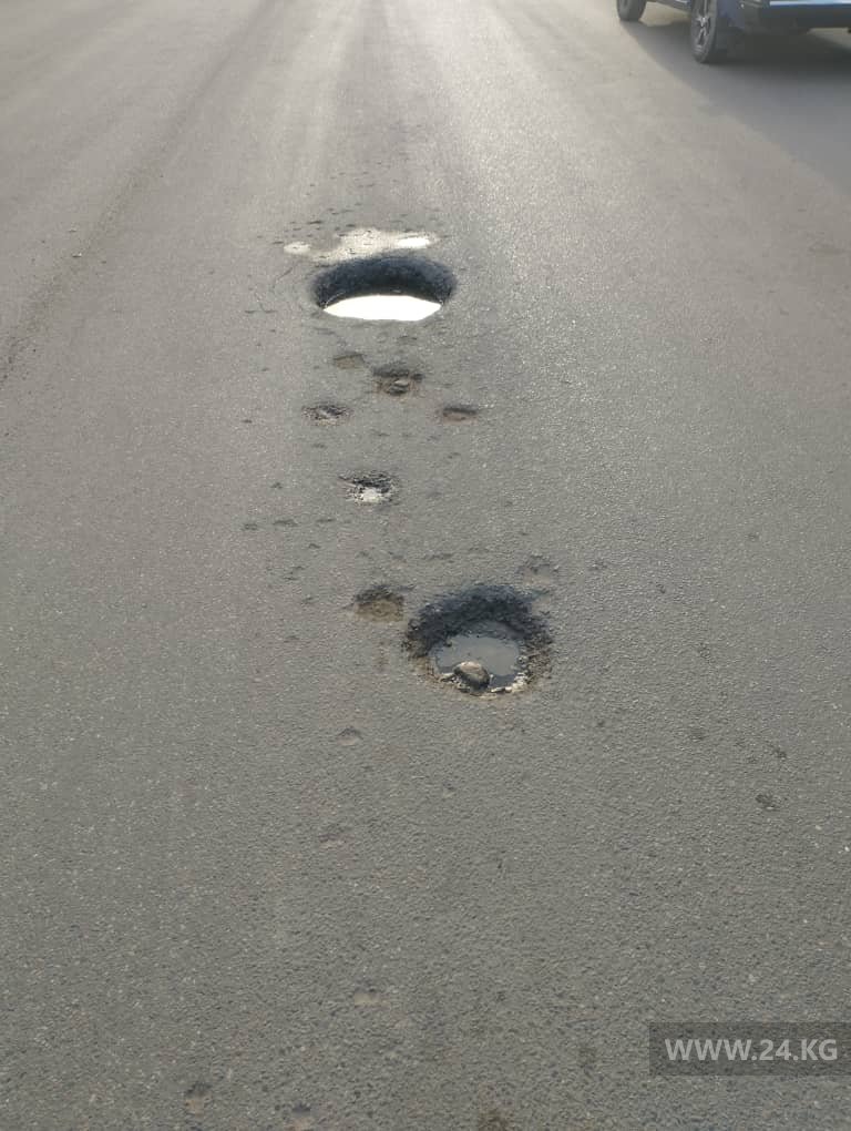 На проезжей части улицы Джамгырчинова образовались ямы. Об этом 24-kg.com сообщил читатель.