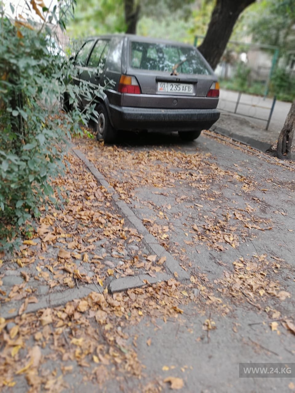 А вот так оставляют машину на газоне на пересечении улиц Чокморова и Исанова.