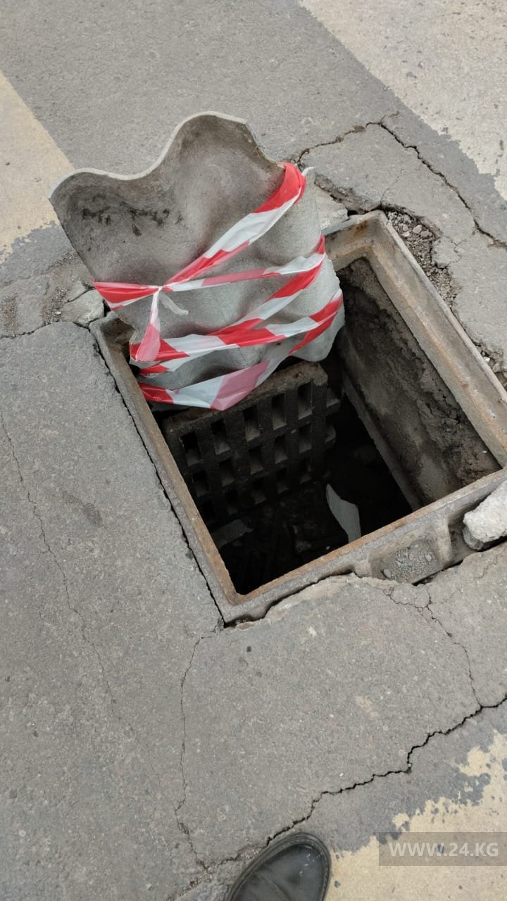 На проезжей части в районе пересечения улиц Шералиева и Эртайлак нет сливной решетки. Об этом 24-kg.com сообщил читатель.
