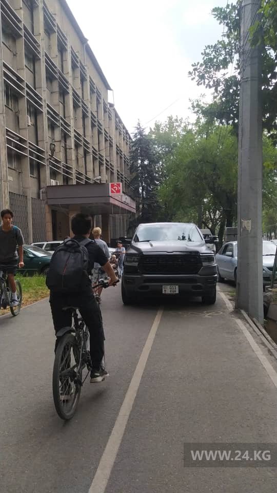 Продолжают заезжать на тротуар и велодорожку на улице Байтик Баатыра.