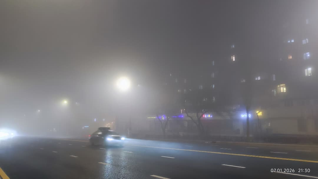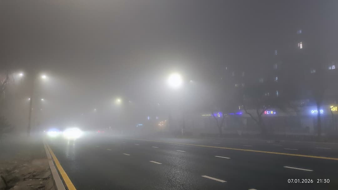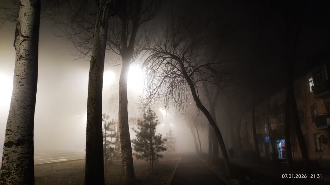 Фото Айбека Султанова. Туман в Бишкеке, 7 января 2026 года