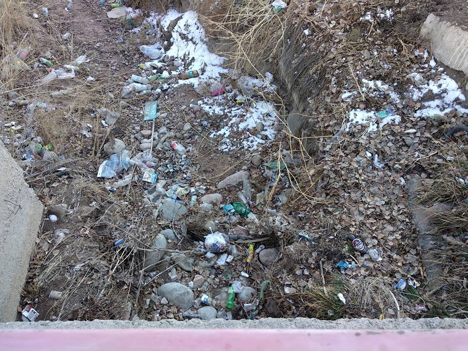 В Чолпон-Ате люди кидают мусор прямо в русло реки, впадающей в Иссык-Куль