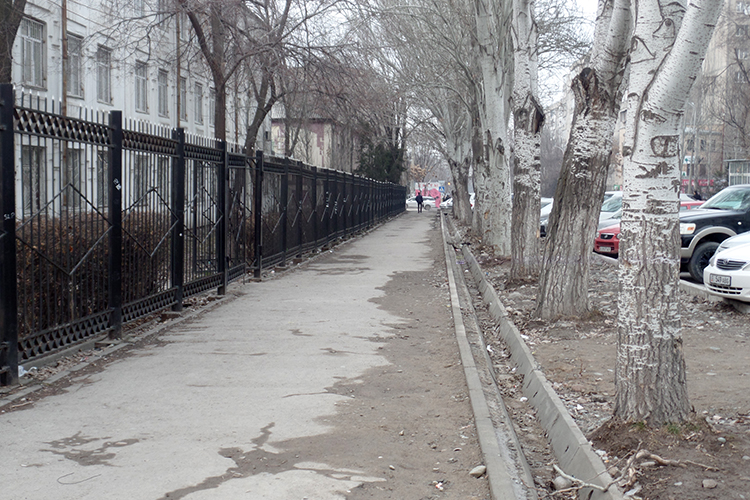 «Ремонт нашего участка от улицы Боконбаева до Линейной начали осенью 2017 года, но работали так «оперативно», что завершить работы не успели. И вот читаю, что вместо завершения таких недоделок, мэрия начинает реконструкцию других улиц. При ремонте нарушена и ирригационная система, и вряд ли вода сможет добраться до оставшихся деревьев», — написал он.
