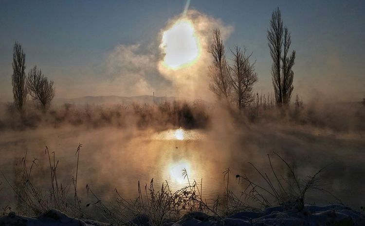 А теперь для контраста перелетим в Нарынскую область, где до сих пор, особенно по ночам, хозяйничает зима. Фотографию просыпающегося февральским холодным утром города прислал Билимбек Ажибеков.