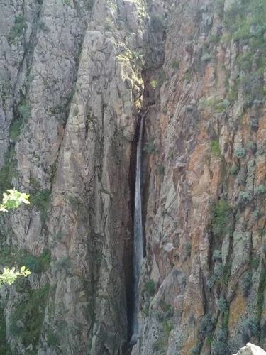 Далее следуем на запад, в сторону Чуйской области. Полюбуемся Голубиным водопадом в ущелье Чонкурчак, запечатленным Натальей Азаровой. Его высота 40 метров и находится он в 45 километрах от Бишкека.