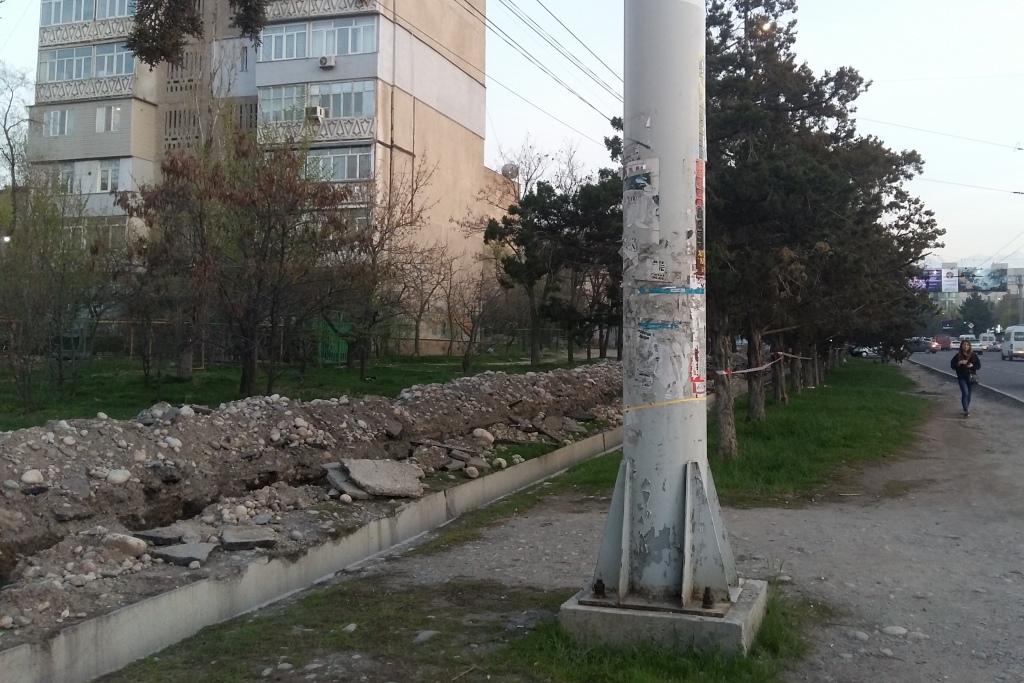 Неделю назад перекопали тротуар в 5-м микрорайоне, чтобы провести коммуникации, но работы не ведут. Об этом ИА «24-kg.com» сообщил читатель.