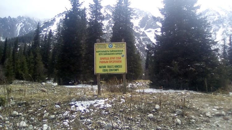 «Природа лечит себя равным презрением». Туристы пытались понять, что хотели сказать авторы установленного в природном парке Ала-Арча природоохранного щита.