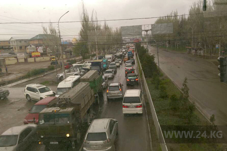 Из-за закрытой в одном направлении на ремонт улицы Шабдана Баатыра образовалась пробка. Об этом ИА «24-kg.com» сообщил читатель.