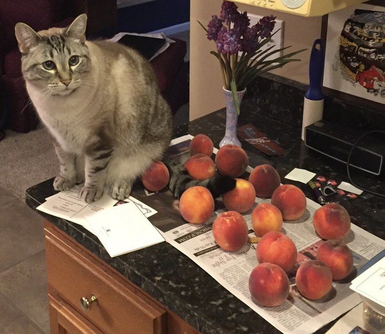 «Кошка моих родителей почему-то очень любит персики, и это восхитительно! Родители регулярно присылают в наш семейный чат фотографии, на которых кот отдыхает рядом с персиками», — написала Лидия.