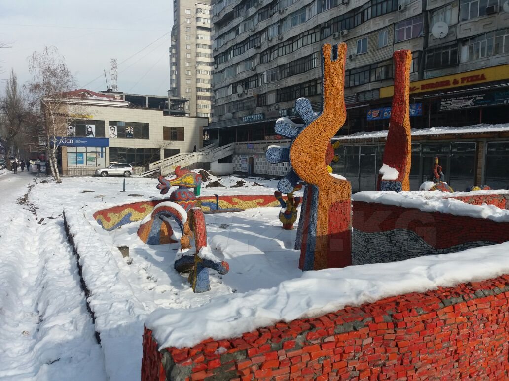 Напомним, фонтан «Сказка» Владимира Кругмана появился в 1982 году. Он выполнен в едином комплексе с прилегающей территорией многоэтажного жилого дома «Иссык-Куль». Облицовка фигур сказочных животных и бассейн включает цветную смальту.