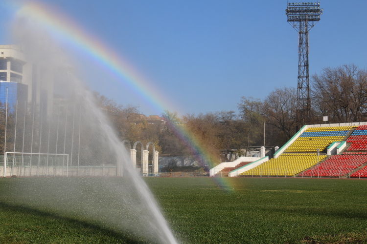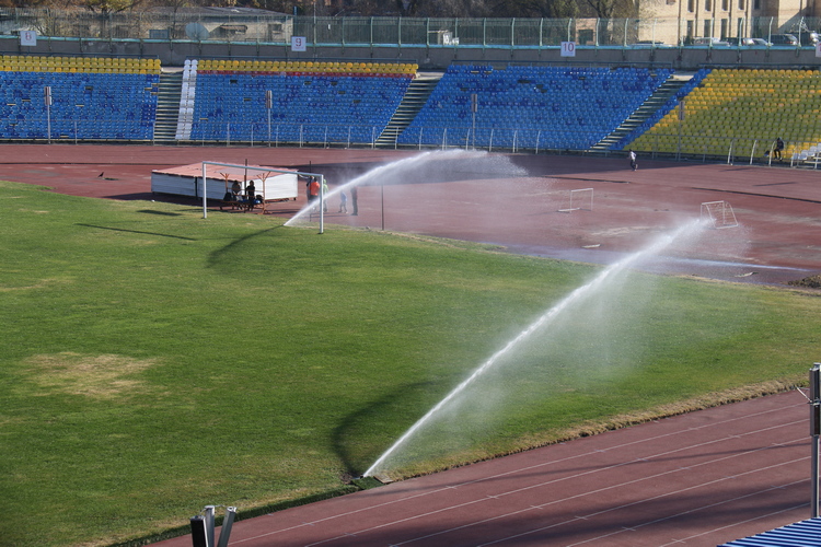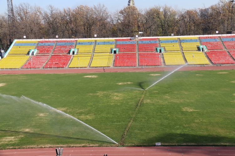 В Кыргызстане это третий стадион с автоматическим поливом футбольного поля. Такая система работает на двух полях Канта.