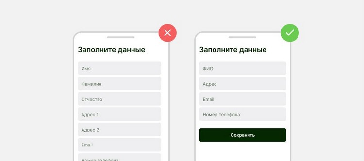 - Упрощение процесса оформления. Сведите к минимуму количество полей формы и исключите ненужные поля. Поля «имя», «фамилия», «отчество» можно объединить в одно, вторую адресную строку можно удалить. В идеале количество полей формы должно быть не больше шести-семи. Обязательно поставьте индикатор прогресса, чтобы покупатель видел, сколько действий осталось совершить.