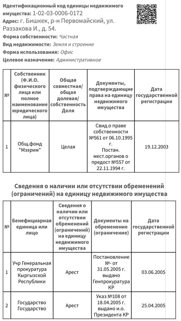С учетом того, что здание находится под арестом, мы призываем правоохранительные органы провести тщательное расследование и вернуть его на баланс государства. Этот объект может быть использован для нужд горожан, например под создание детского сада, которых в Бишкеке не хватает.