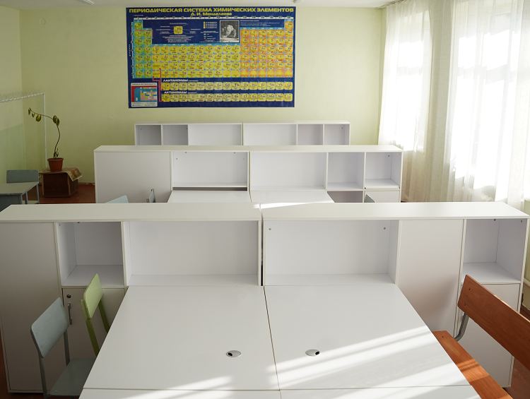 Новую мебель разместили в кабинете химии, библиотеке и учительской. Теперь помещения стали удобнее и функциональнее как для учеников, так и для учителей. Модульные конструкции позволяют легко трансформировать пространство под особенности учебного процесса, будь то лабораторные работы, практические занятия или подготовка к урокам.
