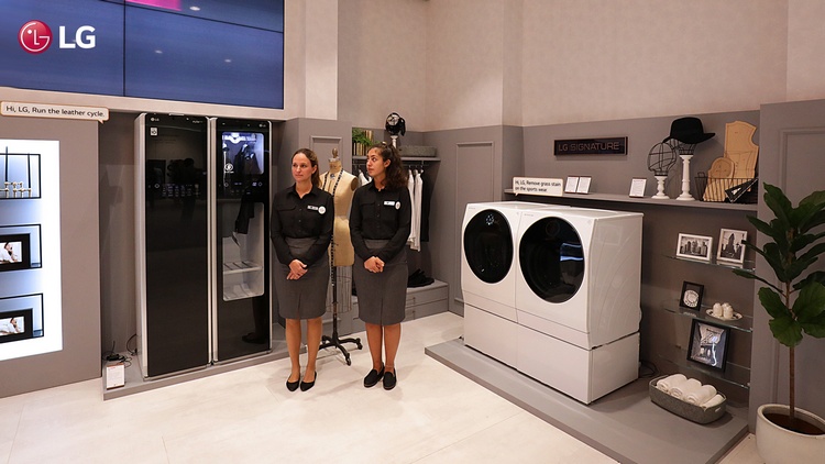 Умный холодильник InstaViewThinQ занимает центральное место зоны ThinQ Gourmet с кулинарной тематикой. Здесь посетители могут из первых рук испытать передовые возможности холодильника в подборе рецептов и мгновенной настройке режима приготовления в подключенной печи и других кухонных приборах. Искусственный интеллект и 29-дюймовая уникальная сенсорная панель, которая становится прозрачной, если по ней постучать, позволяют холодильнику стать не просто бытовым прибором на кухне, а настоящим техническим прорывом, меняющим способ взаимодействия с техникой.