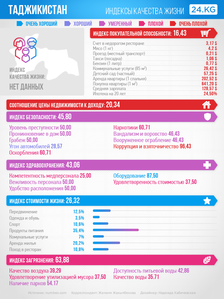 Рассчитать общий индекс качества в Таджикистане сервису не удалось из-за нехватки данных.
