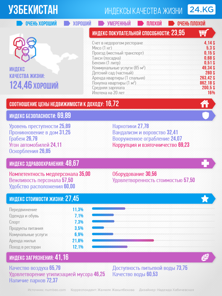 Самый высокий индекс качества жизни среди стран Центральной Азии у Узбекистана. Такие сведения приводит база статистических данных со всего мира Numbeo.