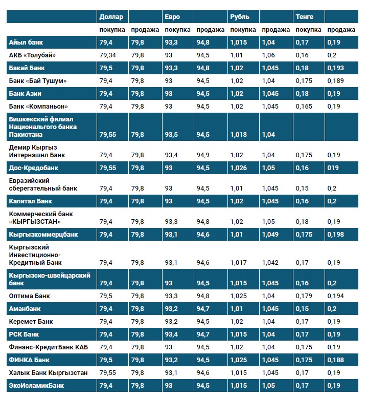 Курс доллара в коммерческих банках Кыргызстана на 13 октября