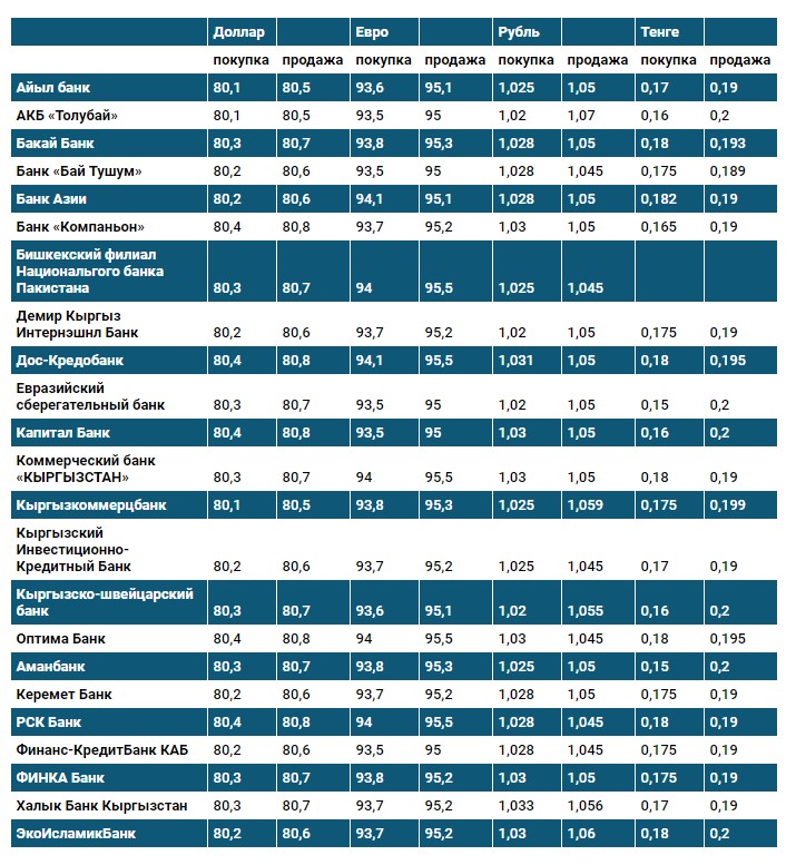 Курс доллара в коммерческих банках Кыргызстана на 15 октября