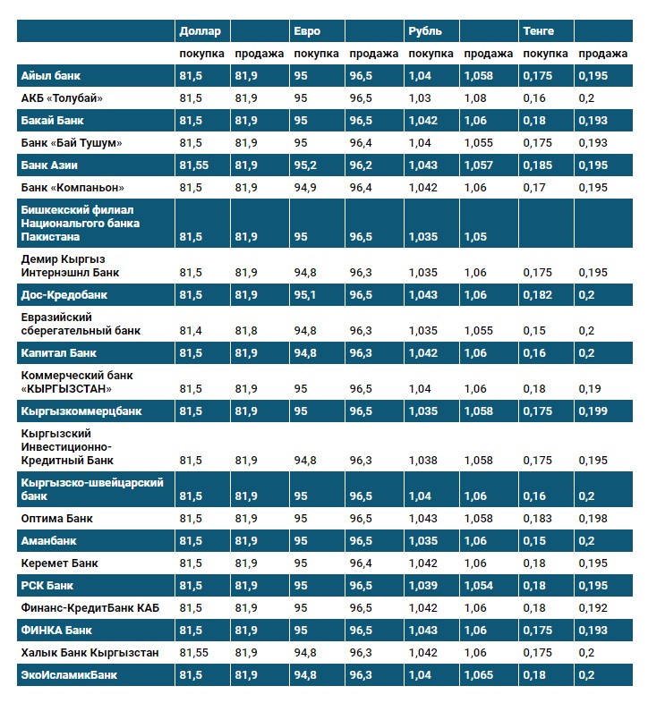 Курс доллара в коммерческих банках Кыргызстана на 16 октября