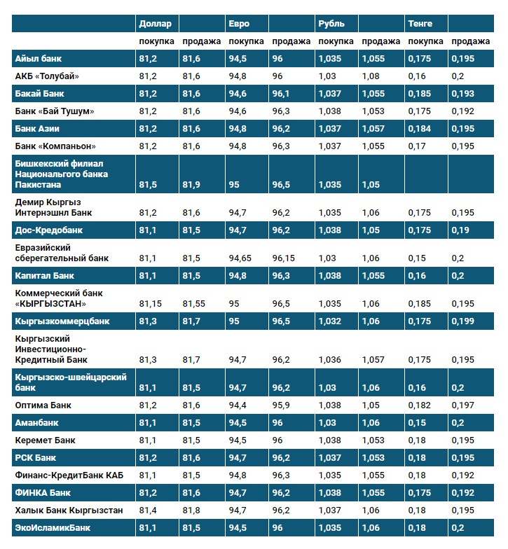 Курс доллара в коммерческих банках Кыргызстана на 19 октября