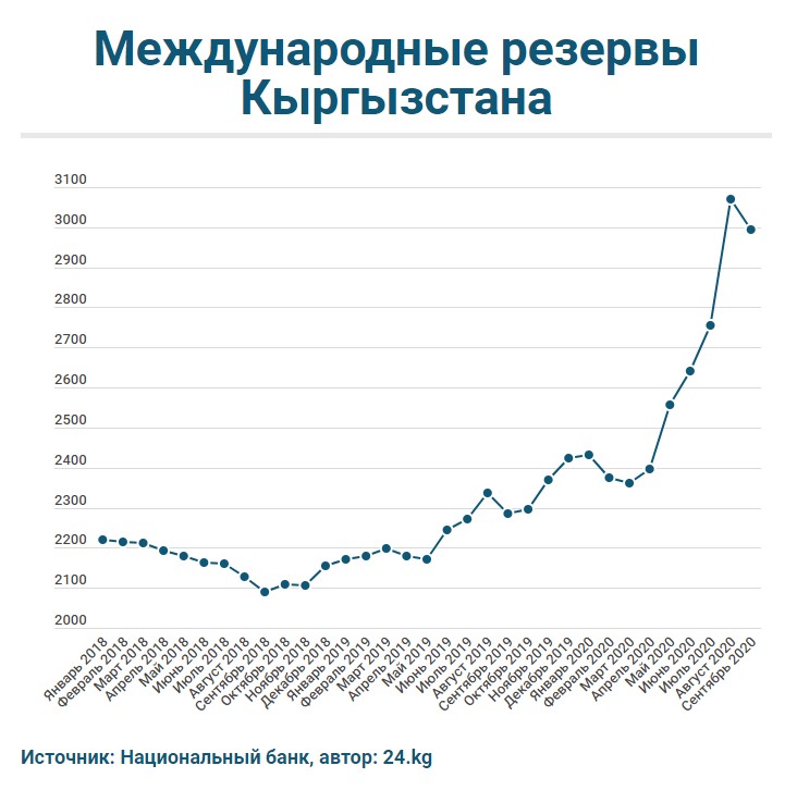 По итогам сентября валовые международные резервы Кыргызстана сократились на $76 миллионов 58 тысяч. Об этом сообщается на сайте Национального банка.