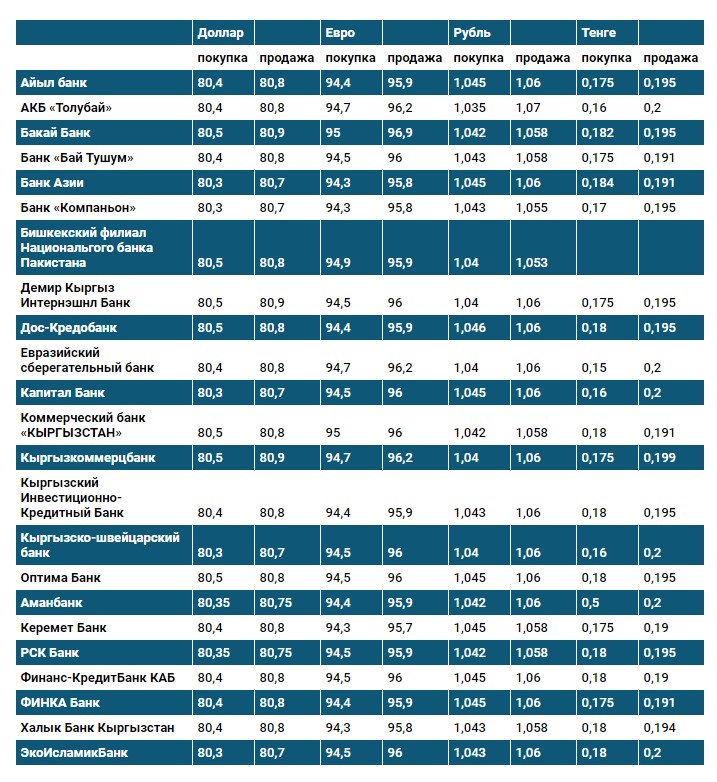 Курс доллара в коммерческих банках Кыргызстана на 23 октября