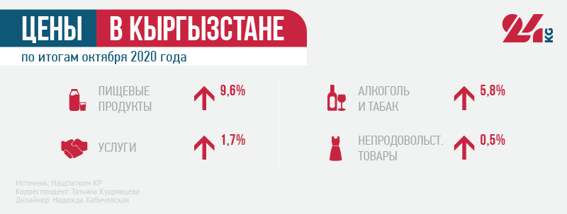 Максимальный рост цен и тарифов с начала года (8,5 процента) зафиксирован в Таласской области. Это связано с наибольшим повышением цен на пищевые продукты и безалкогольные напитки (на 16,6 процента).