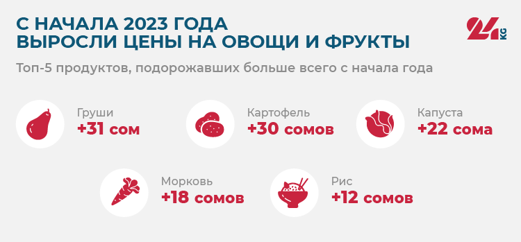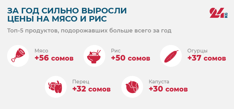С начала 2023 года наша корзина подешевела на 799,5 сома. Интересно, что произошло это за счет снижения стоимости свежих огурцов в 4,6 раза и перца — в 1,5 раза. Но радоваться этому особо не стоит, потому что цены упали только за счет сезонного фактора и к середине осени снова будут достаточно высокими.
