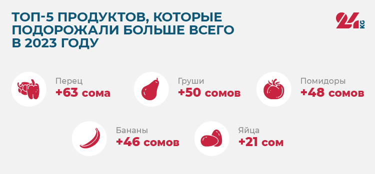 В декабре 2023 года неожиданно подорожали яйца. Всего за две недели цены выросли на 10 сомов. Тут, скорее всего, сыграла роль ситуация в России. Там тоже существенно повысилась стоимость этого продукта. Но после вмешательства силовиков ситуация стала стабилизироваться. До Кыргызстана эта волна докатилась быстро, но повышение хотя бы не было резким.