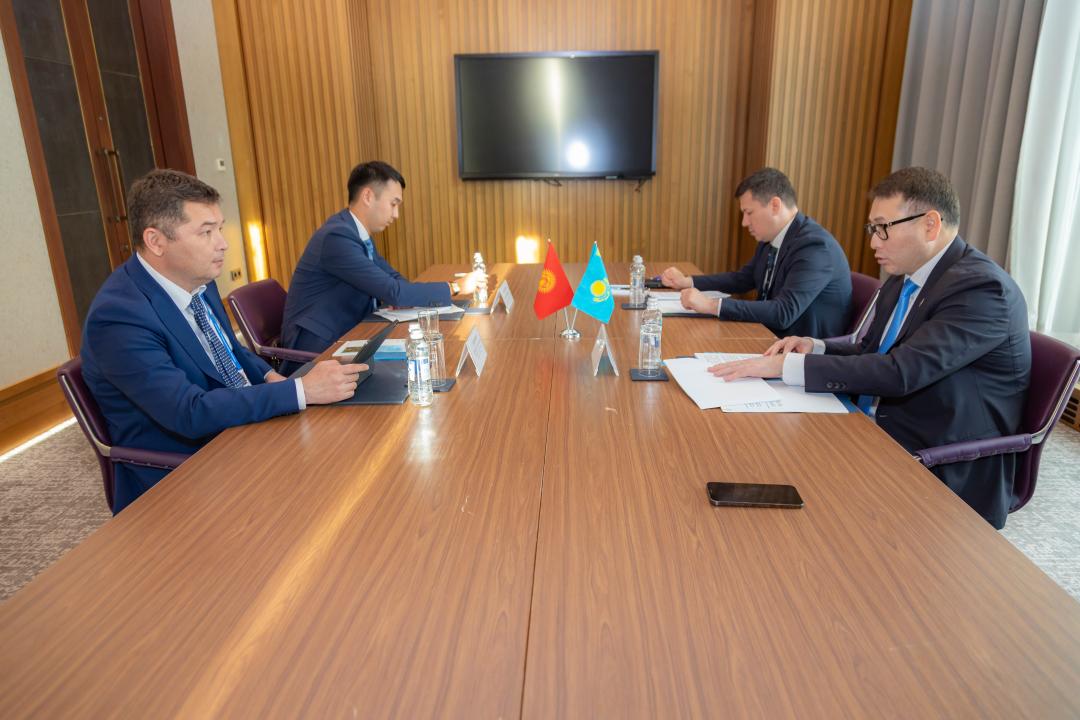 Уточняется, что глава ведомства Арман Шаккалиев провел двустороннюю встречу с министром экономики и коммерции КР Бакытом Сыдыковым.